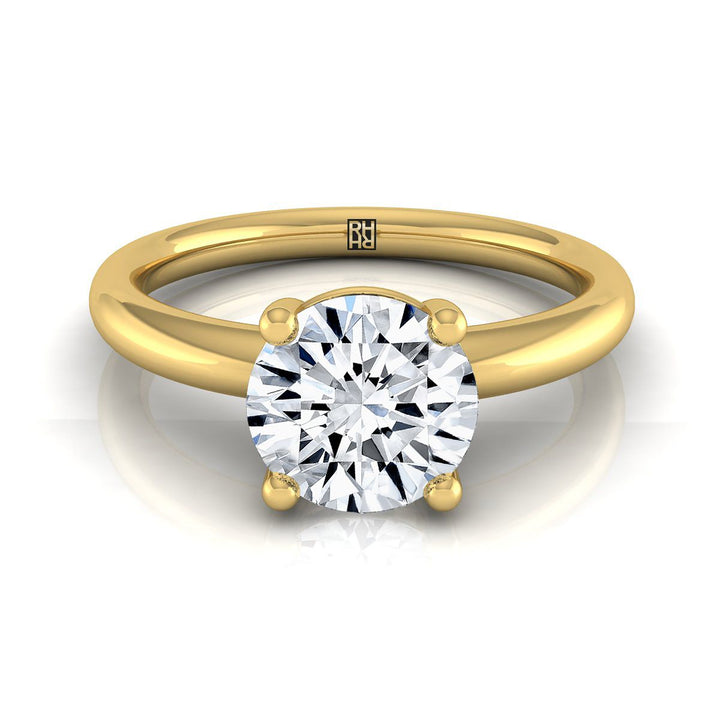18K Yellow Gold Round Brilliant Rounded Comfort Fit Solitaire Engagement Ring