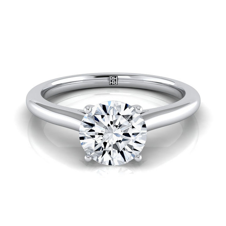 18K White Gold Round Brilliant Pinched Comfort Fit Claw Prong Solitaire Engagement Ring