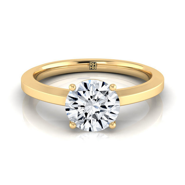 18K Yellow Gold Round Brilliant Beveled Edge Comfort Style Bright Finish Solitaire Engagement Ring