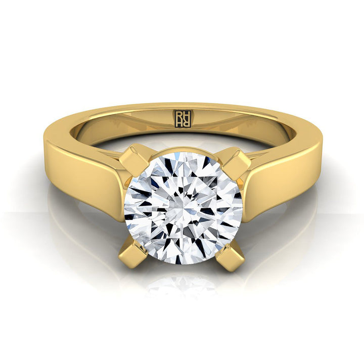 Understated Elegance, This Diamond Solitaire Engagement Ring Showcases A Cathedral Center Setting With A High Polished Squared Edge Shank In 18k Yellow Gold