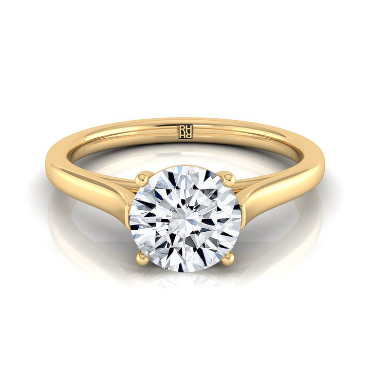 18K Yellow Gold Round Brilliant Elegant Cathedral Solitaire Engagement Ring