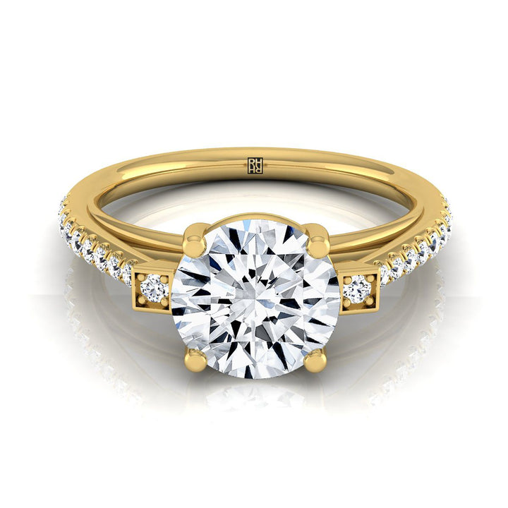 14K Yellow Gold Round Brilliant Diamond Delicate Three Stone Pave Engagement Ring -1/3ctw