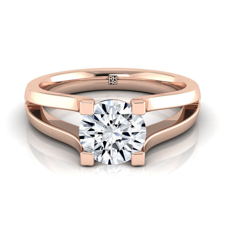 14K Rose Gold Round Brilliant Plain High Polish Split Shank Solitaire Engagement Ring