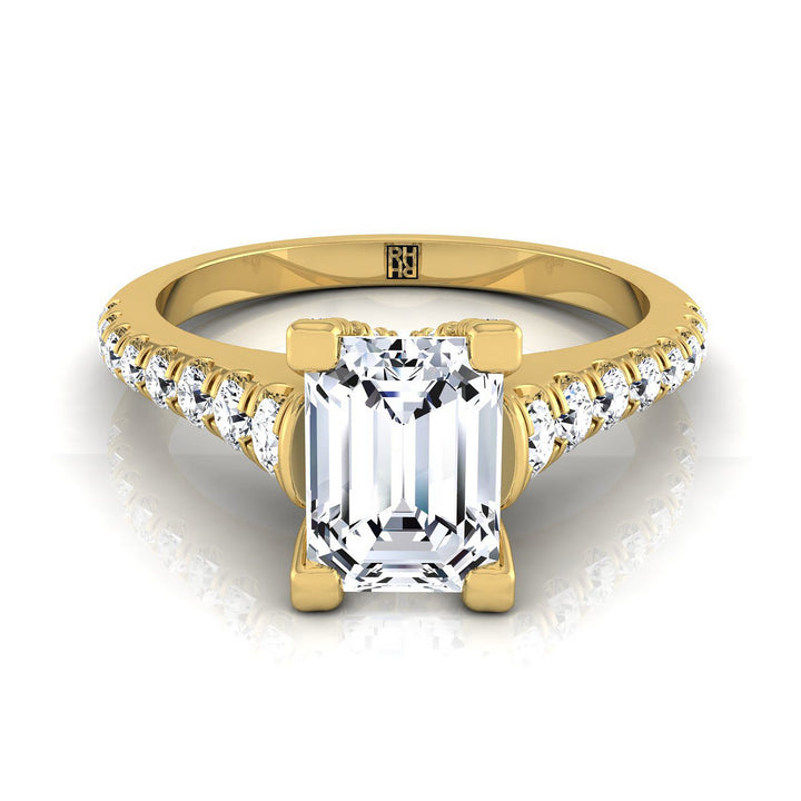 14K Yellow Gold Emerald Cut Diamond Pave Prong Linear Engagement Ring -1/2ctw