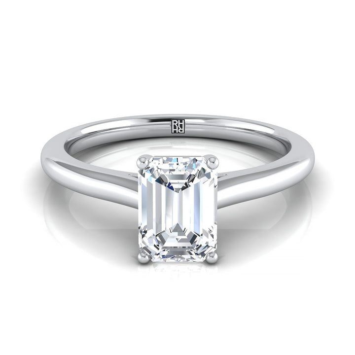 Platinum Emerald Cut Pinched Comfort Fit Claw Prong Solitaire Engagement Ring