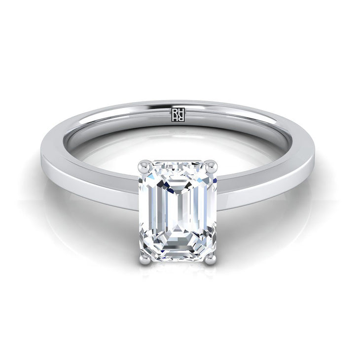 18K White Gold Emerald Cut Beveled Edge Comfort Style Bright Finish Solitaire Engagement Ring