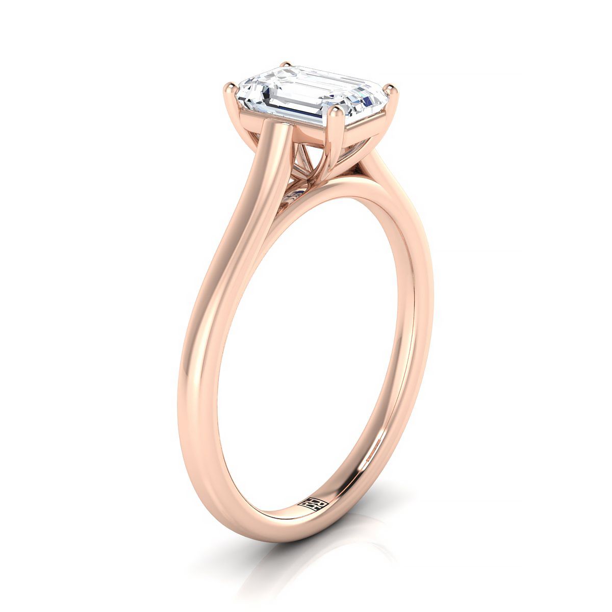 A Classic Statement Of Style, This Emerald Cut Solitaire Engagement Ring Showcases A Squared Edge Shank And Cathedral Setting In 14k Rose Gold
