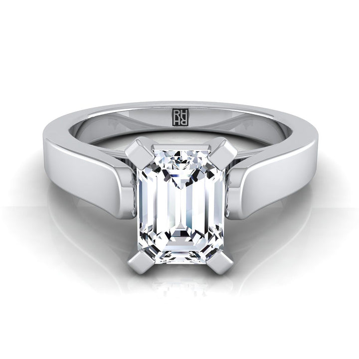 Understated Elegance, This Emerald Cut Diamond Solitaire Engagement Ring Showcases A Cathedral Center Setting With A High Polished Squared Edge Shank In Platinum