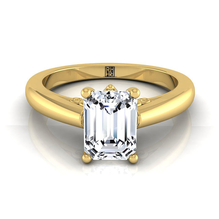 14K Yellow Gold Emerald Cut Scroll Gallery Comfort Fit Solitaire Engagement Ring