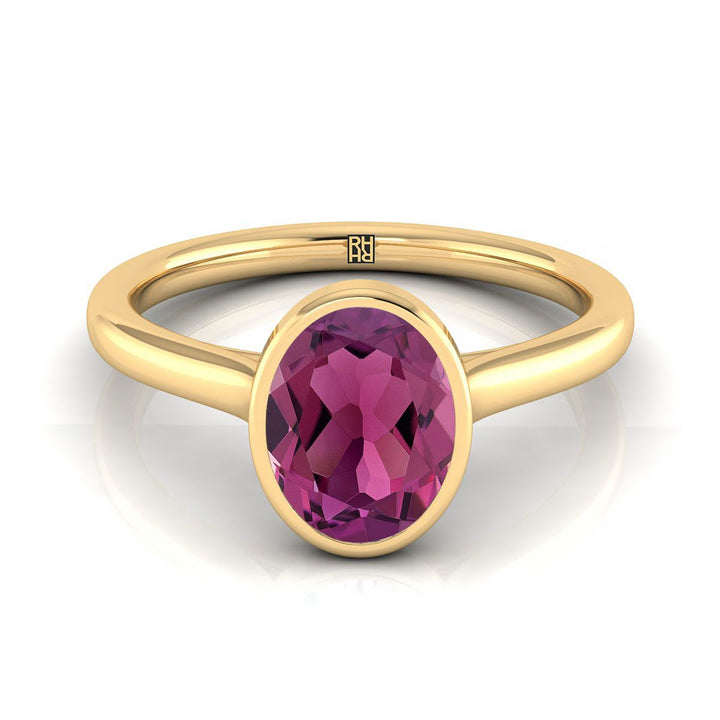 14K Yellow Gold Oval Garnet Simple Bezel Solitaire Engagement Ring