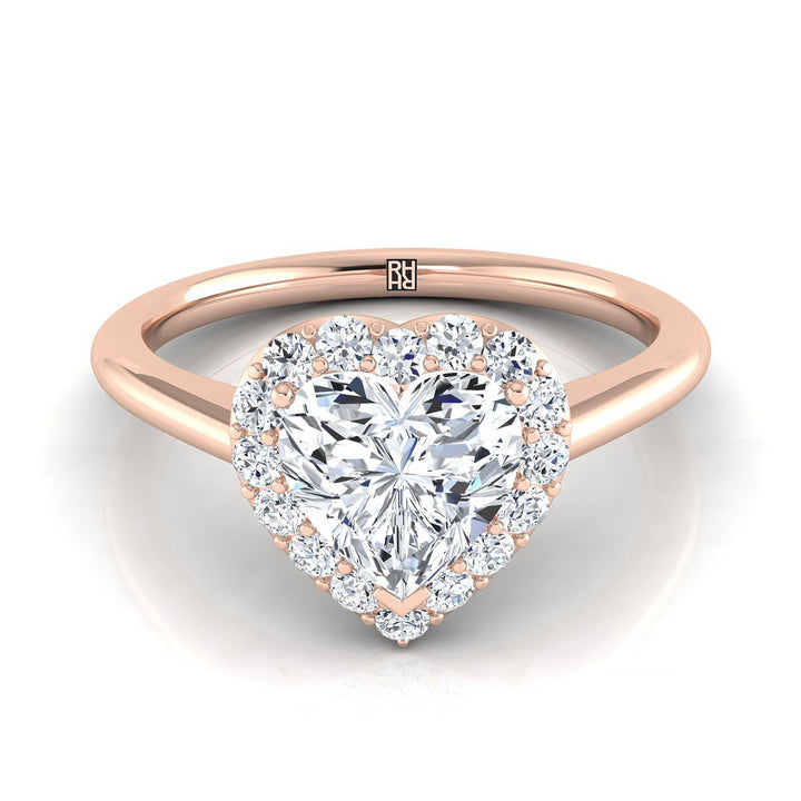 14K Rose Gold Heart Shape Center Diamond Shared Prong Halo Engagement Ring -1/5ctw