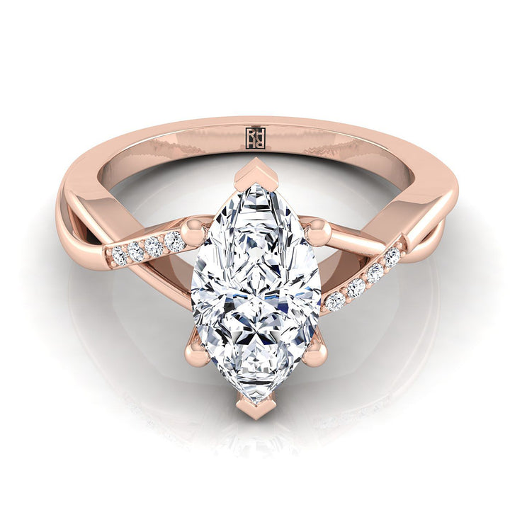 14K Rose Gold Marquise Diamond Criss Cross Twist Engagement Ring