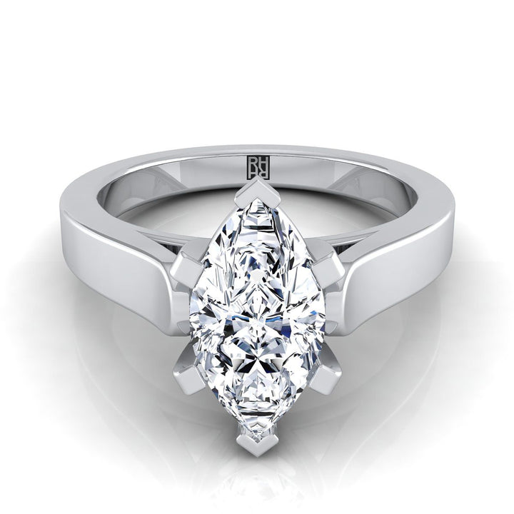 Understated Elegance, This Marquise Diamond Solitaire Engagement Ring Showcases A Cathedral Center Setting With A High Polished Squared Edge Shank In 18k White Gold