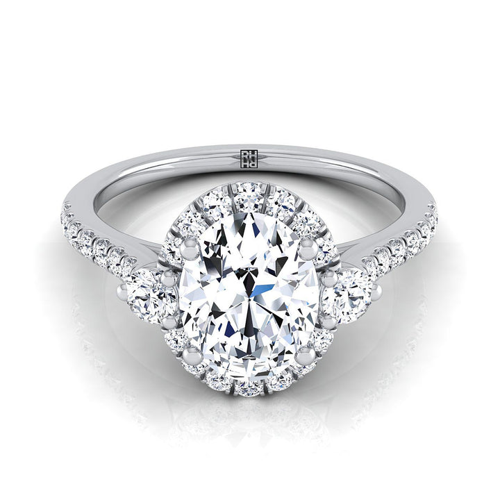 18K White Gold Oval Diamond Three Stone Delicate Halo Engagement Ring -1/3ctw