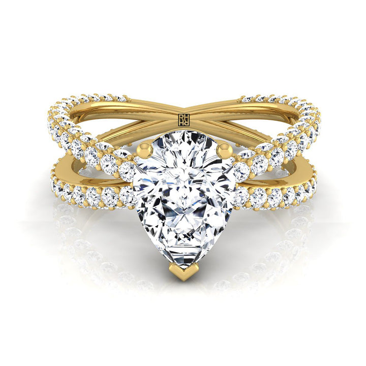 14K Yellow Gold Pear Shape Center Open Diamond Pave Criss Cross Engagement Ring -1-1/3ctw