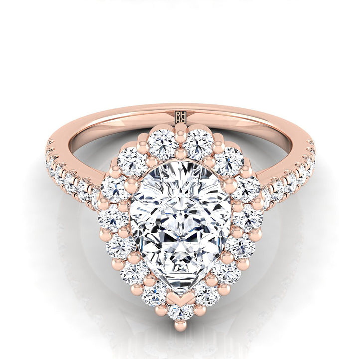 14K Rose Gold Pear Shape Center Diamond Shared Prong Halo Engagement Ring -5/8ctw
