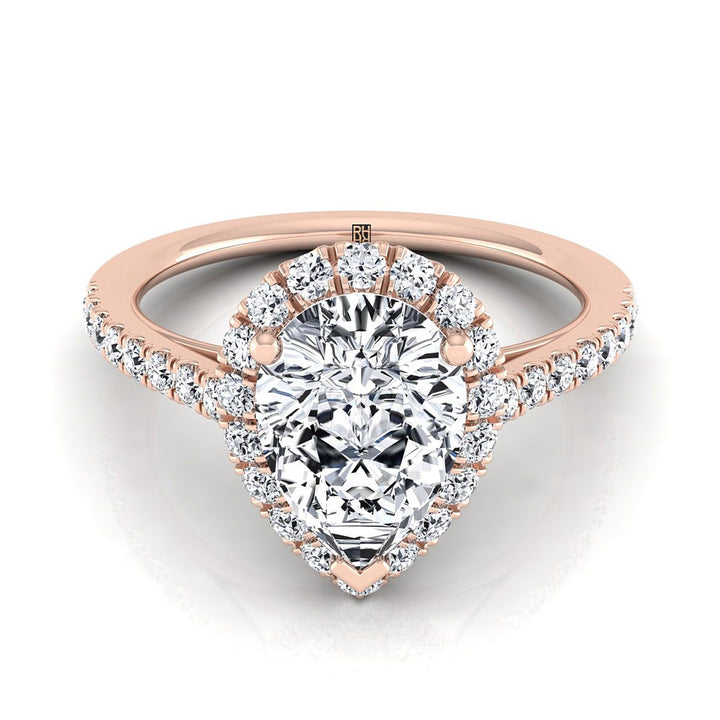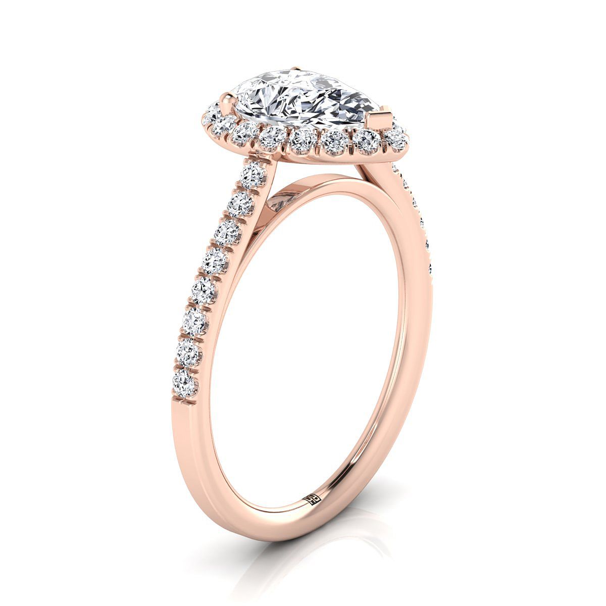 14K Rose Gold Pear Shape Center Diamond Petite Halo French Pave Engagement Ring -3/8ctw