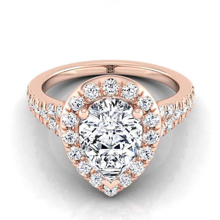 14K Rose Gold Pear Shape Center Diamond Simple Prong Halo with Petite Split Shank Pave Engagement Ring -1/2ctw