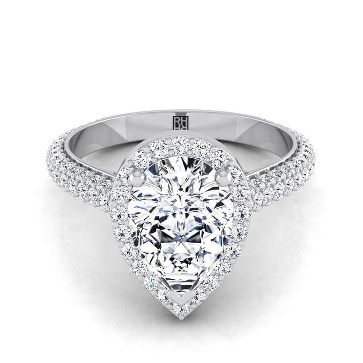 14K White Gold Pear Shape Center Diamond Micro-Pavé Halo Engagement Ring -7/8ctw