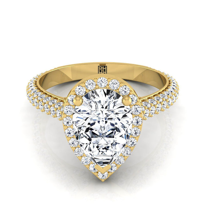 14K Yellow Gold Pear Shape Center Diamond Micro-Pavé Halo Engagement Ring -7/8ctw