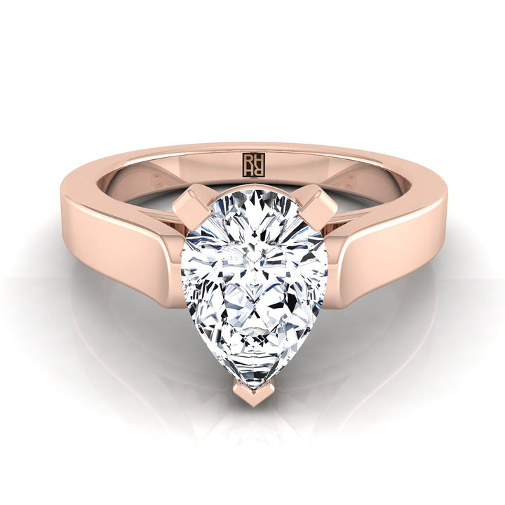 Understated Elegance, This Pear Shape Diamond Solitaire Engagement Ring Showcases A Cathedral Center Setting With A High Polished Squared Edge Shank In 14k Rose Gold