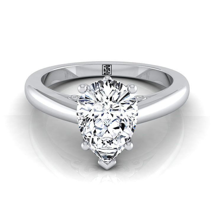 Platinum Pear Shape Center Scroll Gallery Comfort Fit Solitaire Engagement Ring