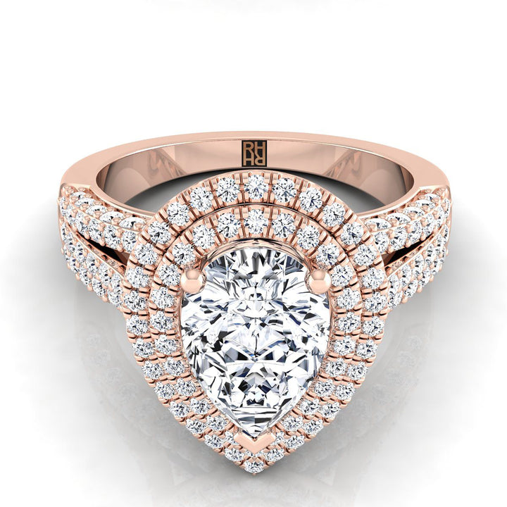 14K Rose Gold Pear Shape Center Extraordinary Three Tier Diamond Halo Crown Engagement Ring -7/8ctw