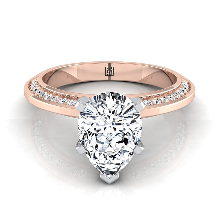 14K Rose Gold Pear Shape Center Diamond Knife Edge Micropave Engagement Ring -1/5ctw