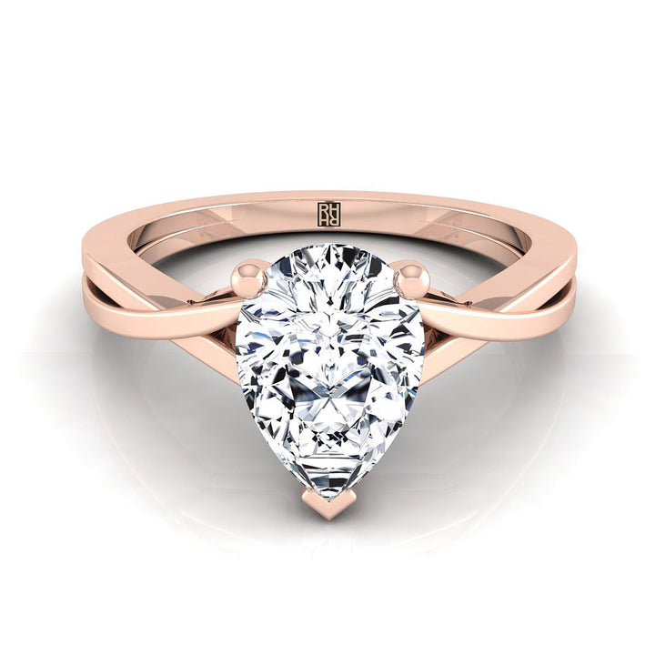 14K Rose Gold Pear Shape Center Delicate Twist Solitaire Engagement Ring