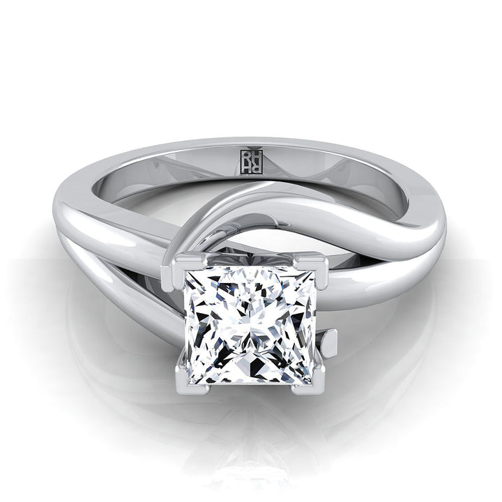 14K White Gold Princess Cut Asymetical Bypass Solitaire Twist Engagement Ring