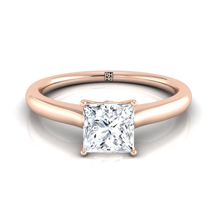 Understated Elegance, This Princess Cut Diamond Engagement Ring Showcases A Bezel Set Diamond Design Gallery With A Classic High Polish Finish In 14k Rose Gold