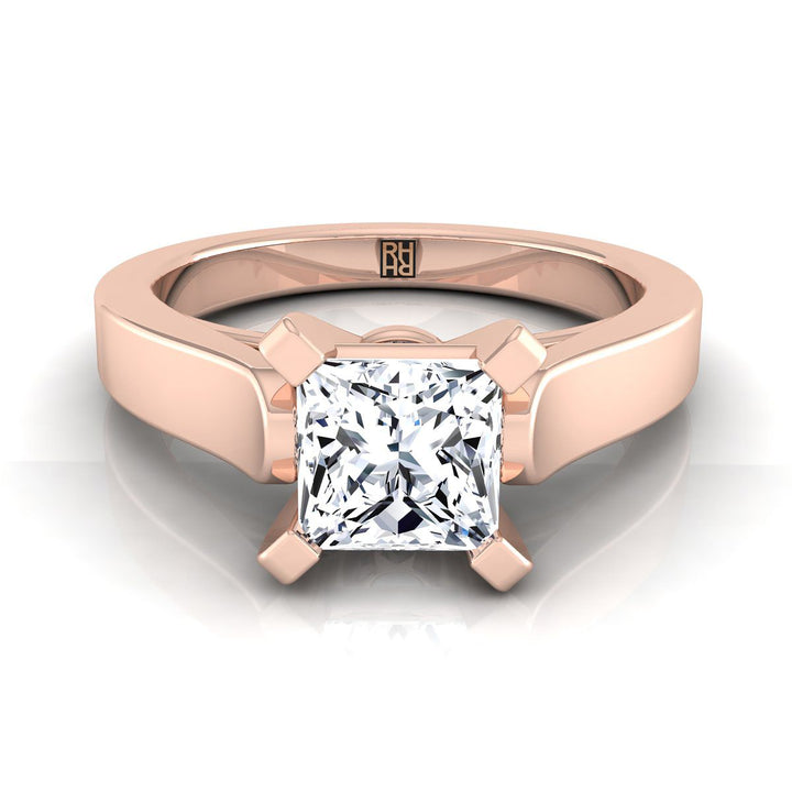 Understated Elegance, This Princess Cut Diamond Solitaire Engagement Ring Showcases A Cathedral Center Setting With A High Polished Squared Edge Shank In 14k Rose Gold