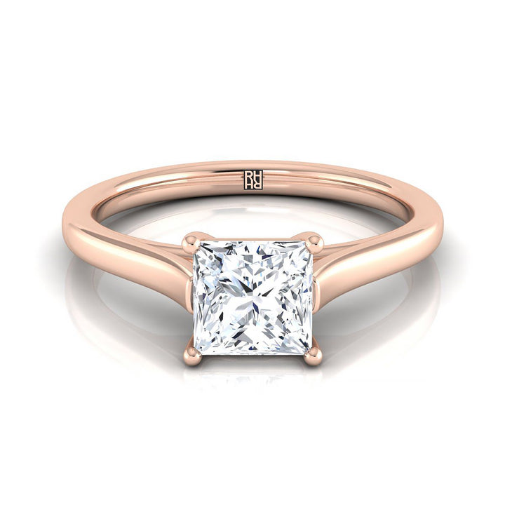 14K Rose Gold Princess Cut Elegant Cathedral Solitaire Engagement Ring