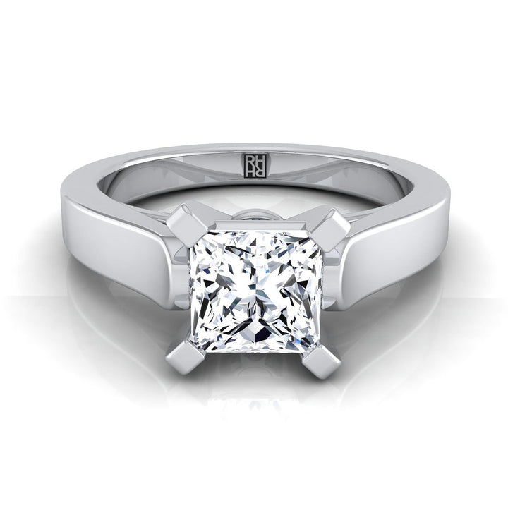 Understated Elegance, This Princess Cut Diamond Solitaire Engagement Ring Showcases A Cathedral Center Setting With A High Polished Squared Edge Shank In 14k White Gold