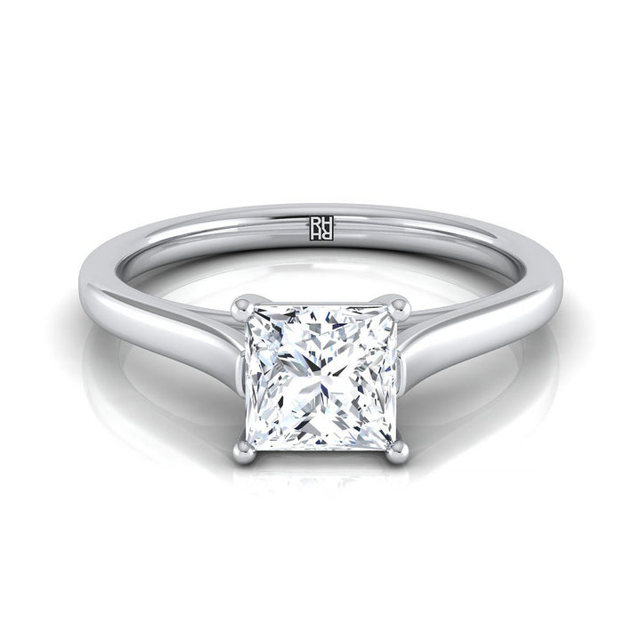 A Classic Statement Of Style, This Princess Cut Solitaire Engagement Ring Showcases A Squared Edge Shank And Cathedral Setting In 14k White Gold