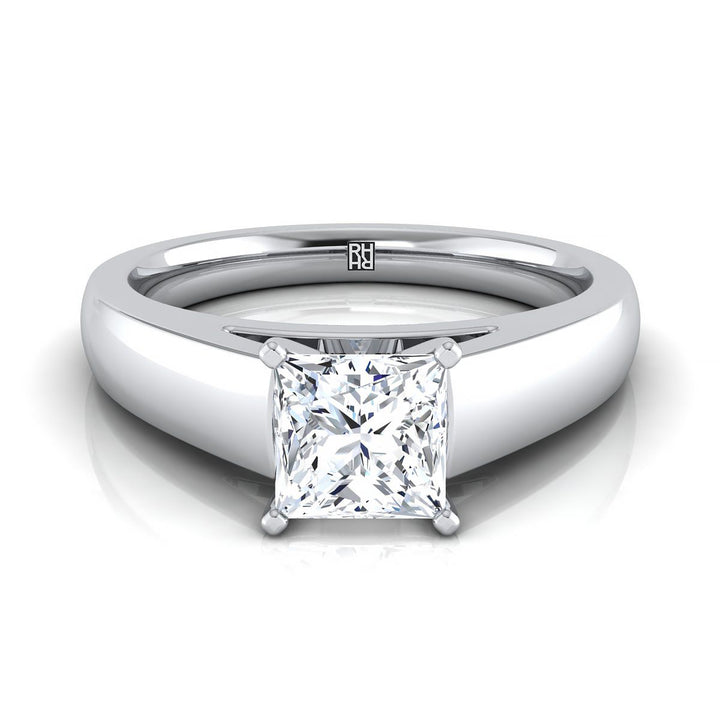 This Princess Cut Diamond Engagement Ring Showcases A High Polish Tapered Shank In 18k White Gold