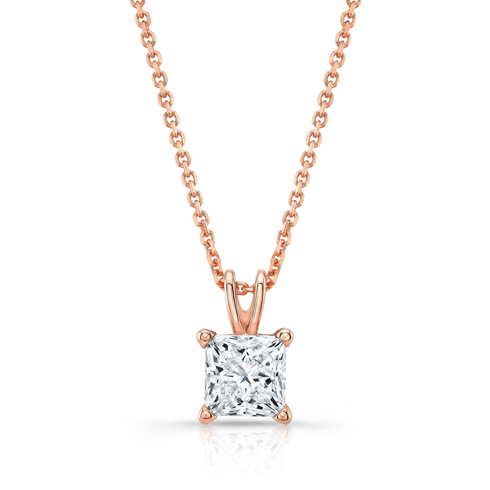 14k Rose Gold Solitaire Pendant With 1 Princess Shape Diamond Weighing 1.5 Carat On A 16-18 Inch Adjustable Cable Chain