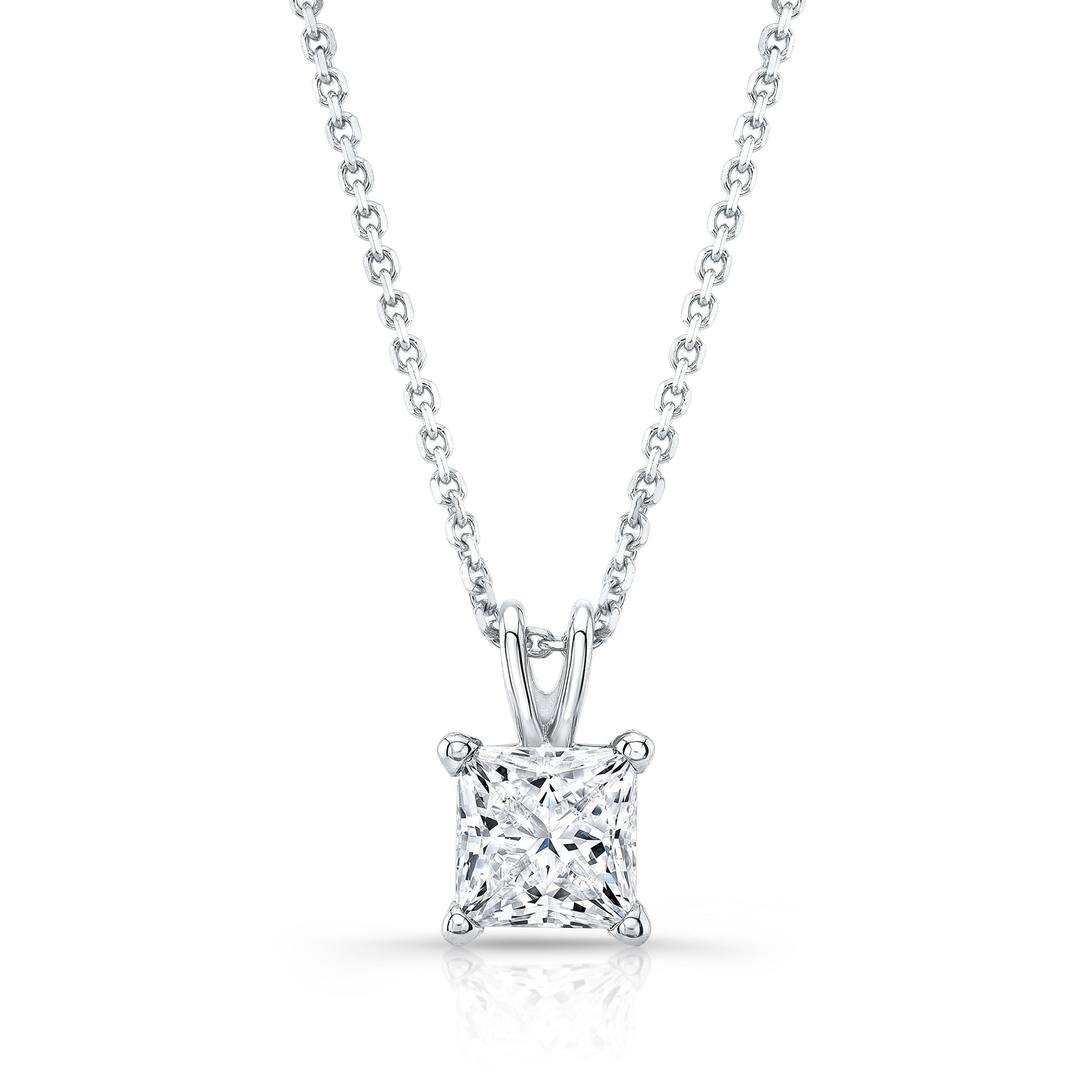 Princess Diamond Solitaire Pendant In A 14k White Gold 4-prong Basket Setting, 0.75ct. T.w. (hi, Si1-si2)