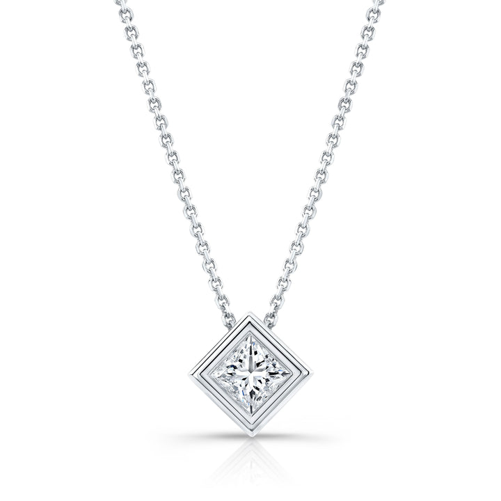 Princess Diamond Solitaire Pendant In A 14k White Gold Bezel Slide Setting, 0.75ct. T.w. (hi, Si1-si2)