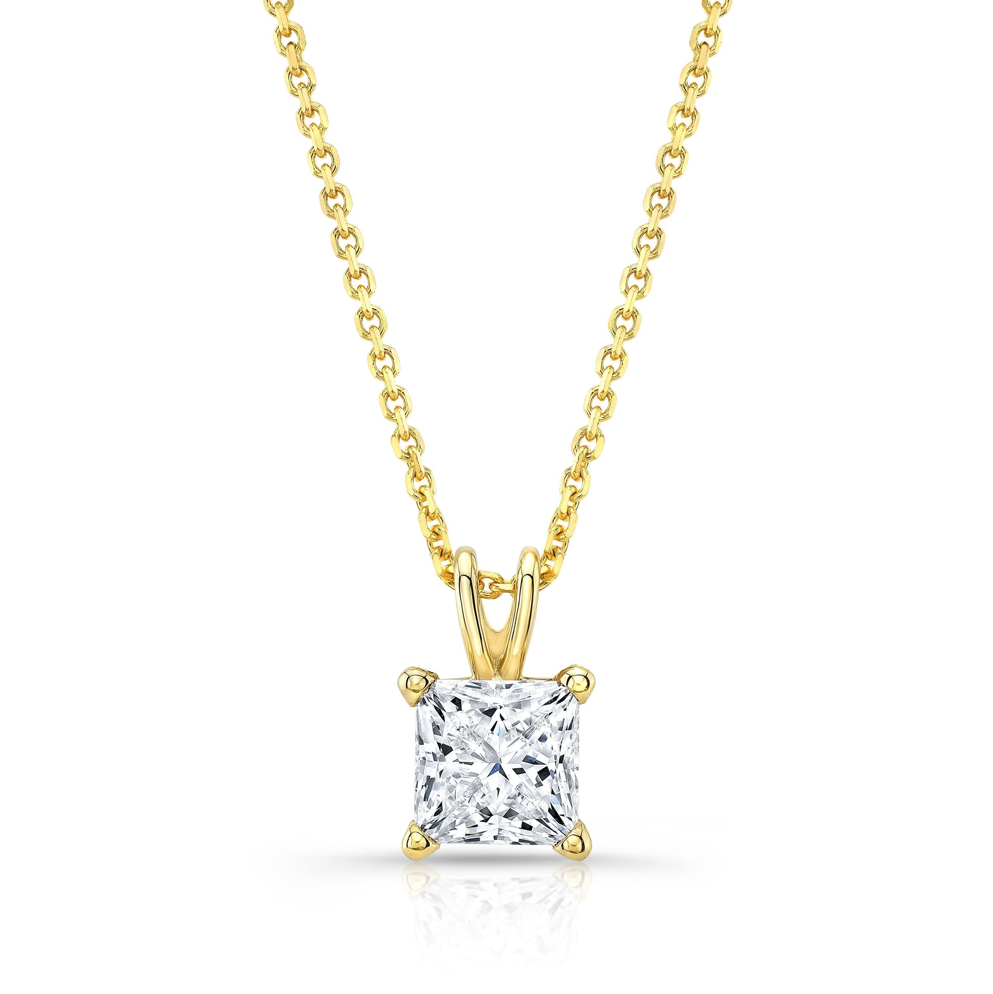 Princess Diamond Solitaire Pendant In A 14k Yellow Gold 4-prong Basket Setting, 3ct. T.w. (hi, Si1-si2)