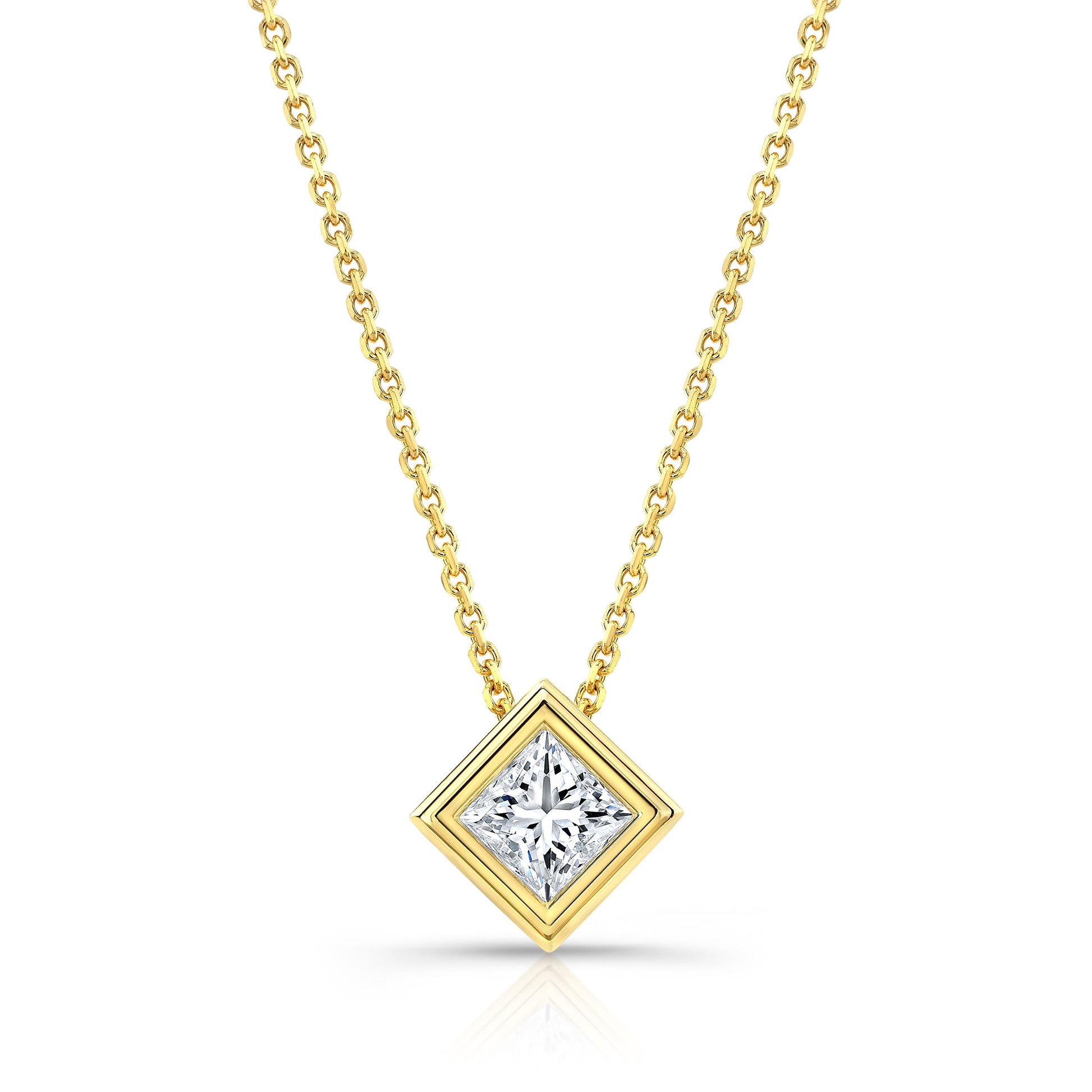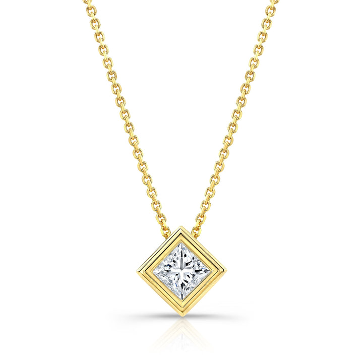 Princess Diamond Solitaire Pendant In A 14k Yellow Gold Bezel Slide Setting, 0.75ct. T.w. (hi, Vs1-vs2)