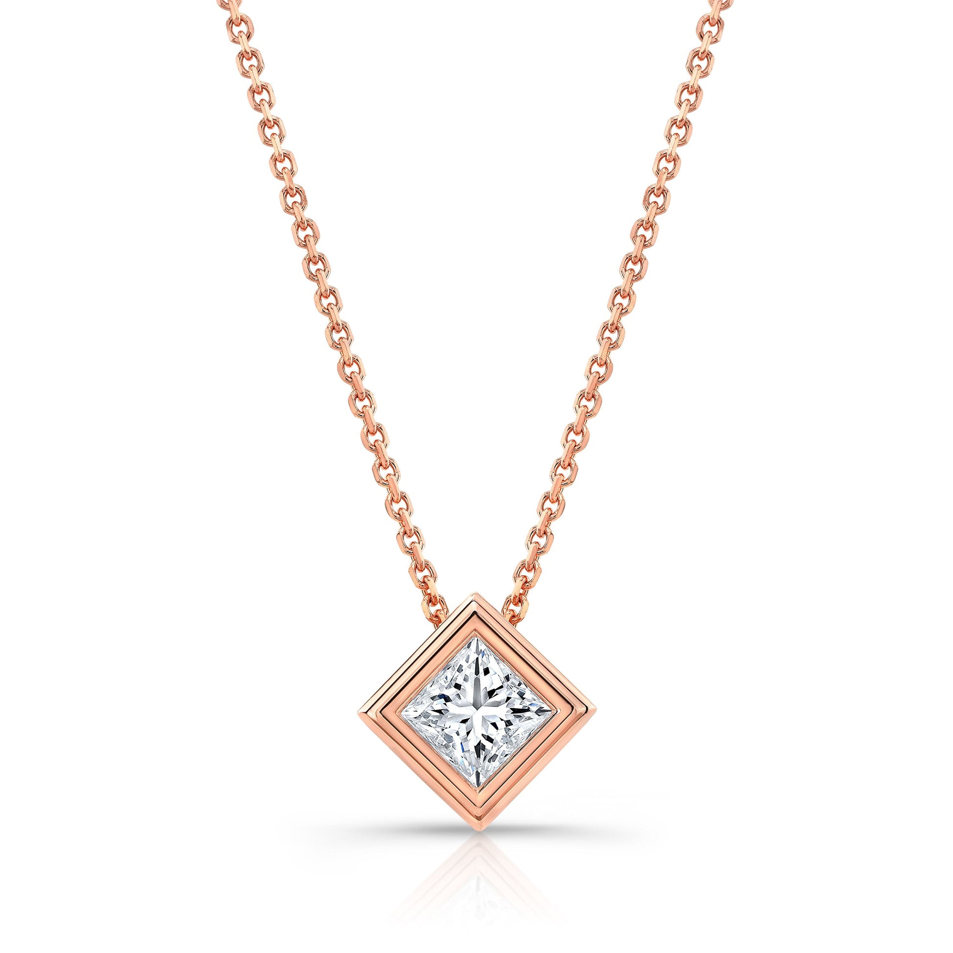 Princess Diamond Solitaire Pendant In A Platinum Bezel Slide Setting, 0.75ct. T.w. (hi, Si1-si2)