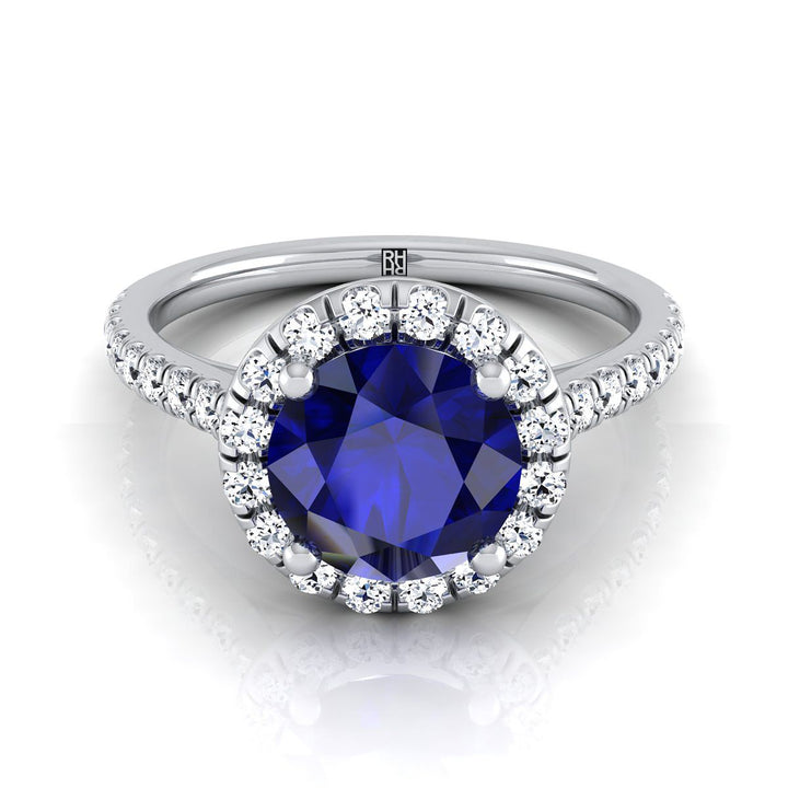 14K White Gold Round Brilliant Classic French Pave Halo and Linear Engagement Ring -3/8ctw