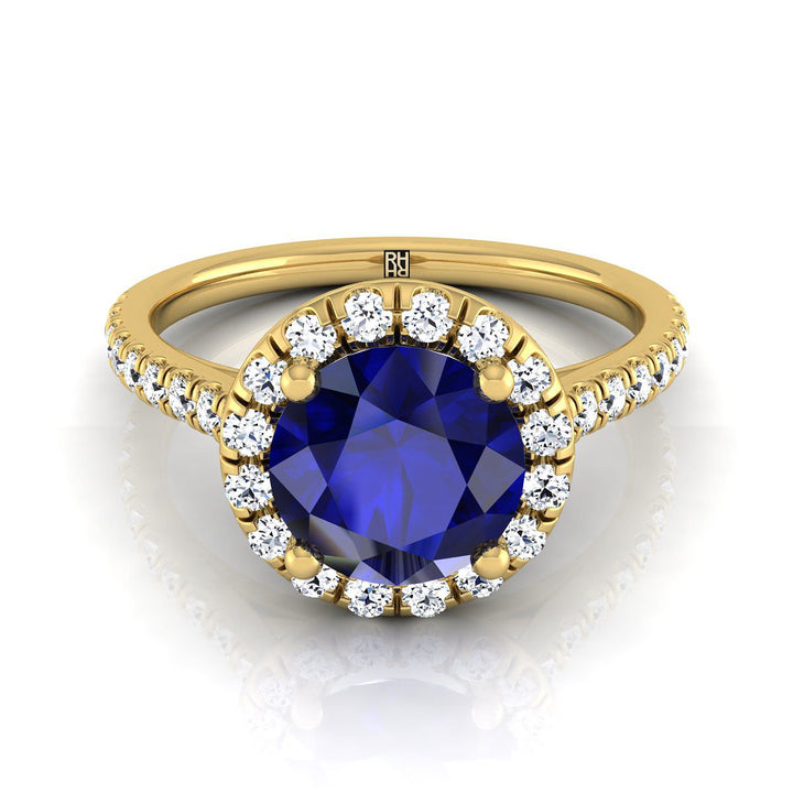 14K Yellow Gold Round Brilliant Classic French Pave Halo and Linear Engagement Ring -3/8ctw