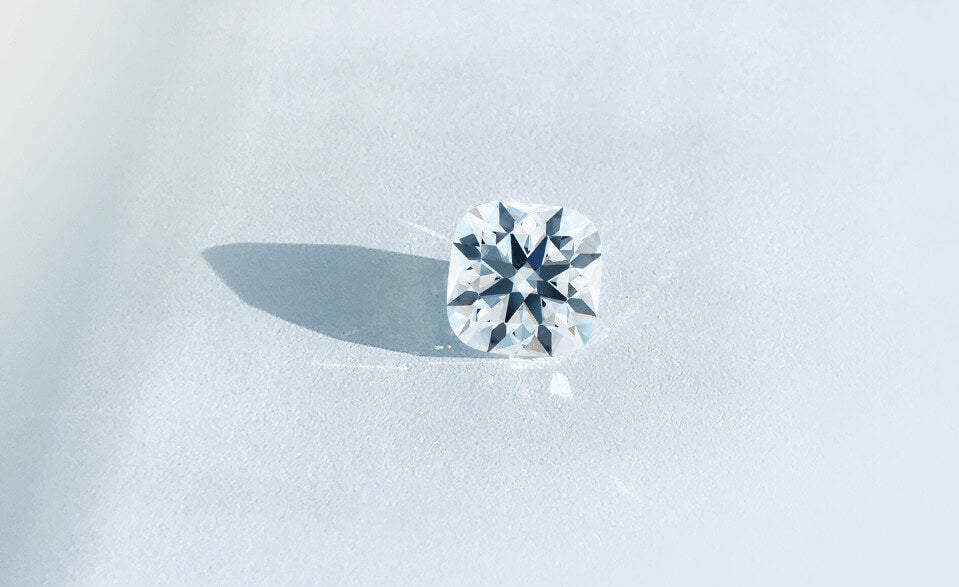 เพชรเบลลิแอนท์คูชั่นของเราได้รับสิทธิบัตรใหม่ที่รวมเสน่ห์ของรูปทรงคูชั่นที่ดูโบราณและความเปล่งประกายและไฟที่ไม่มีใครเทียบได้ของเพชรกลมที่ตัดอย่างสมบูรณ์แบบในยุคสมัยใหม่ เพชรเบลลิแอนท์คูชั่นเป็นคูชั่นสี่เหลี่ยมที่ถูกตัดอย่างยอดเยี่ยมให้มีสัดส่วนที่เหมาะสมด้วยความแม่นยำมากจนเห็นได้ชัดว่าขาวและสว่างกว่าทั้งเพชรคูชั่นเบลลิแอนท์มาตรฐานและเพชรคูชั่นเบลลิแอนท์ที่ปรับแต่งมาตรฐาน คุณสามารถเห็นลวดลายด้านที่มีรูปหัวใจและลูกศรที่ชัดเจน หมุนเพื่อเน้นมุมที่โค้งมนอย่างนุ่มนวล ไม่เคยเป็น “น้ำแข็งบด” ของการตัดที่ไม่แม่นยำ
