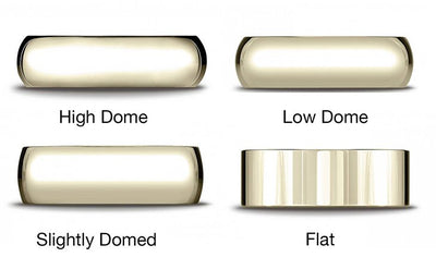 แหวนโดมเล็กน้อยจะเกือบแบนแต่โค้งเพื่อจับแสง สุดท้ายแหวนแต่งงานแบบแบนมีลุคทันสมัยที่ไม่ใช่แบบดั้งเดิม มีขอบที่ชัดเจนและรูปร่างทรงกระบอก