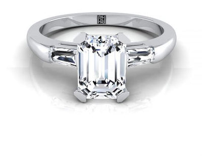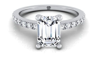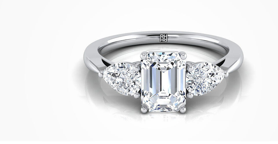 ตัวเรือนที่ลูกค้าของเราชื่นชอบสำหรับแหวนหมั้นทรงมรกตคือตัวเรือนทรงโซลิแทร์ทรงมรกตอันประณีตพร้อมขอบตัวเรือนแบบฝังเพชร สำหรับแหวนหมั้นทรงเอเมอรัลด์คัทแบบฮาโลที่เพิ่มความประณีตอีกนิด ก็มีรายละเอียดเพิ่มเติม (และเพชรเม็ดใหญ่) เนื่องจากตัวเรือนทรงนี้ดูเรียบหรูและเรียบง่าย เจ้าสาวหลายคนจึงเลือกตัวเรือนโซลิแทร์แบบเรียบง่ายเช่นกัน โดยแหวนหมั้นทรงเอเมอรัลด์คัทแบบฝังขอบจะดูหรูหราเป็นพิเศษ ตัวเรือนทรงสามเม็ดก็เป็นที่นิยมเช่นกัน โดยเฉพาะแหวนหมั้นทรงเอเมอรัลด์คัทที่มีขอบบาแกตต์เรียวลงทั้งสองด้าน ซึ่งเป็นสไตล์ของแหวนทรงเอเมอรัลด์คัทอันโด่งดังของเจนนิเฟอร์ โลเปซ