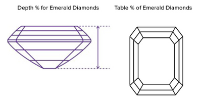 เพชรทรงมรกตยังดูใหญ่กว่าเพชรทรงกลมน้ำหนักกะรัตเดียวกันประมาณ 5% เนื่องจากมีความลึกน้อยกว่า นอกจากนี้ สัดส่วนที่ยาวของเพชรทรงมรกตยังทำให้เข้าใจผิดคิดว่ารูปทรงที่สูงกว่ามีขนาดใหญ่กว่าทรงกลมอีกด้วย นั่นเป็นเหตุผลที่แหวนหมั้นเพชรทรงมรกตขนาดใหญ่อย่างแหวนเพชร 18 กะรัตที่บียอนเซ่ได้รับจากเจย์ซี หรือแหวนเพชรทรงมรกต 16 กะรัตที่เจนนิเฟอร์ โลเปซได้รับจากเอ-ร็อด ดูใหญ่โตมาก