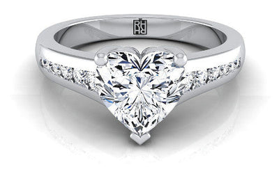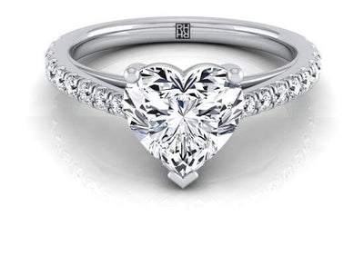 ตัวเรือนแหวนหมั้นทรงหัวใจที่ลูกค้าชื่นชอบคือเพชรเม็ดเดี่ยวรูปหัวใจสุดหรูพร้อมวงแหวนเพชร (อย่าลืมเลือกใช้ก้านรูปตัววีเพื่อป้องกันปลายแหวน) หากคุณชอบลุคคลาสสิก แหวนหมั้นทรงหัวใจแบบฮาโลจะมีเพชรและประกายแวววาวเป็นพิเศษ เนื่องจากหัวใจมีความโดดเด่น จึงเหมาะอย่างยิ่งสำหรับแหวนหมั้นแบบโซลิแทร์ที่เรียบง่าย แหวนหมั้นทรงหัวใจสามเม็ดที่ได้รับความนิยมมากที่สุดจะมีรูปทรงบาแกตต์เรียวลงด้านข้าง ไม่ว่าคุณจะฝังเพชรรูปหัวใจของคุณในลักษณะใด เว้นแต่ว่าเพชรจะถูกล้อมรอบด้วยฮาโล ควรเลือกใช้ก้านรูปตัววีเพื่อป้องกันปลายแหวน
