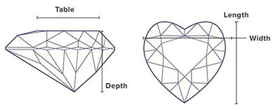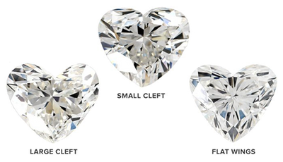 Many heart shaped diamonds have a darker area in the middle where the facets don't reflect as well. This optical effect is called the “bow-tie” effect because the dark area looks like two triangles corner to corner. Look for a heart shape that is brilliant even in the center area to make sure your heart-shaped diamond is beautiful in different lighting conditions.
